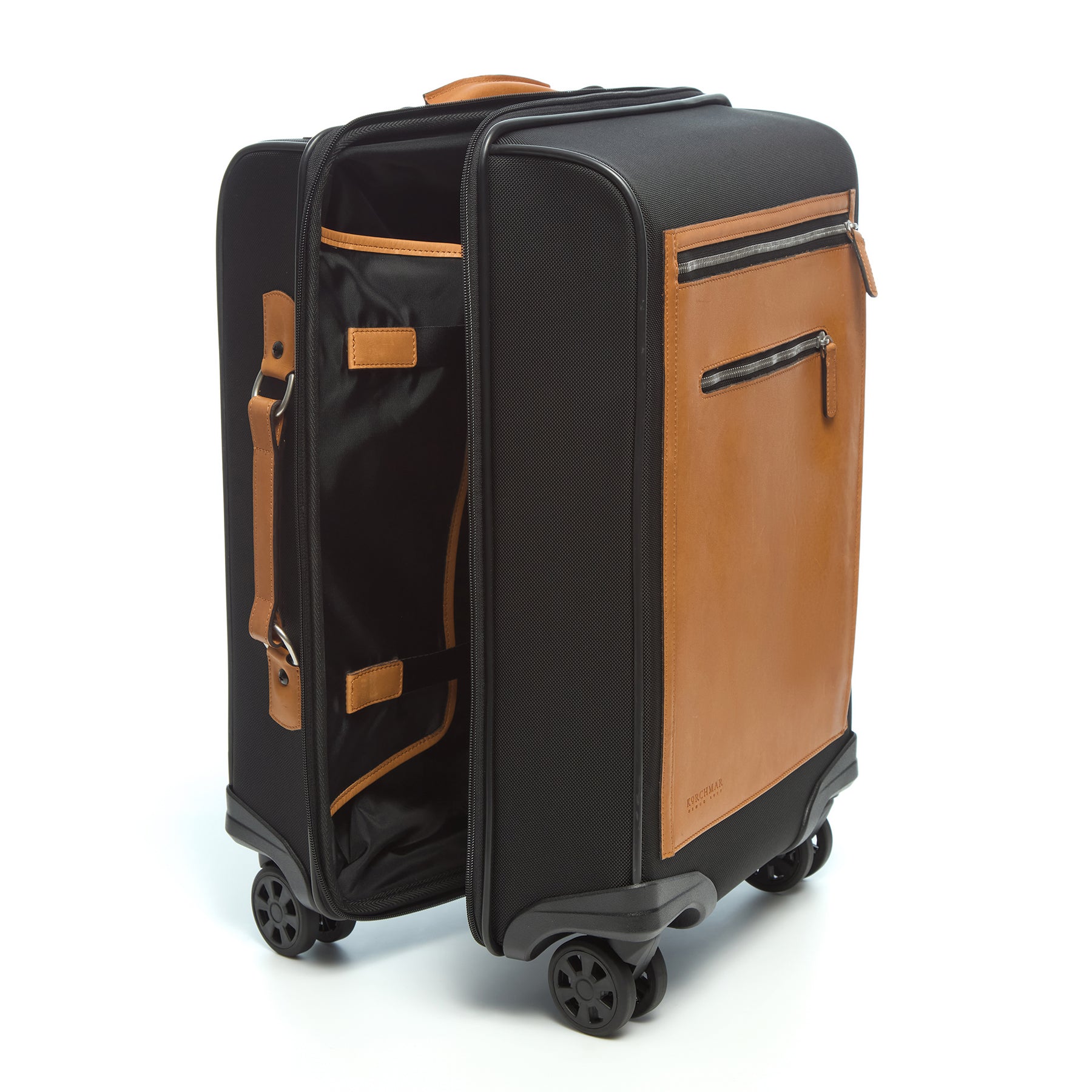 The Hudson is a premium wheeled carry-on bag that is made with 1050 Denier Ballistic Nylon and trimmed in American Full Grain Cowhide. Handcrafted with 4 high-quality spinner wheels and solid brass hardware, the Hudson is a sturdy, hard-wearing companion for your next travel adventure.