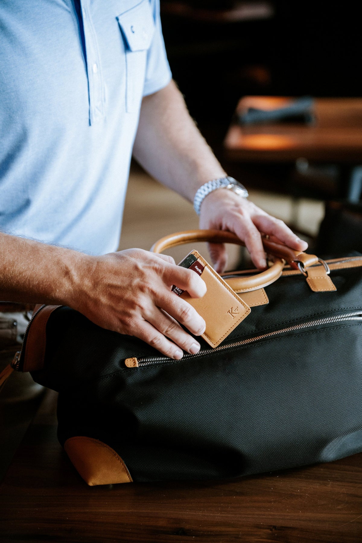 Handcrafted with American full-grain leather, the Benjamin money clip offers a minimalist means to carry the necessities. With two total scalloped credit card pockets and a rear money clip, get ready for effortless organization while keeping your cards and cash secure.