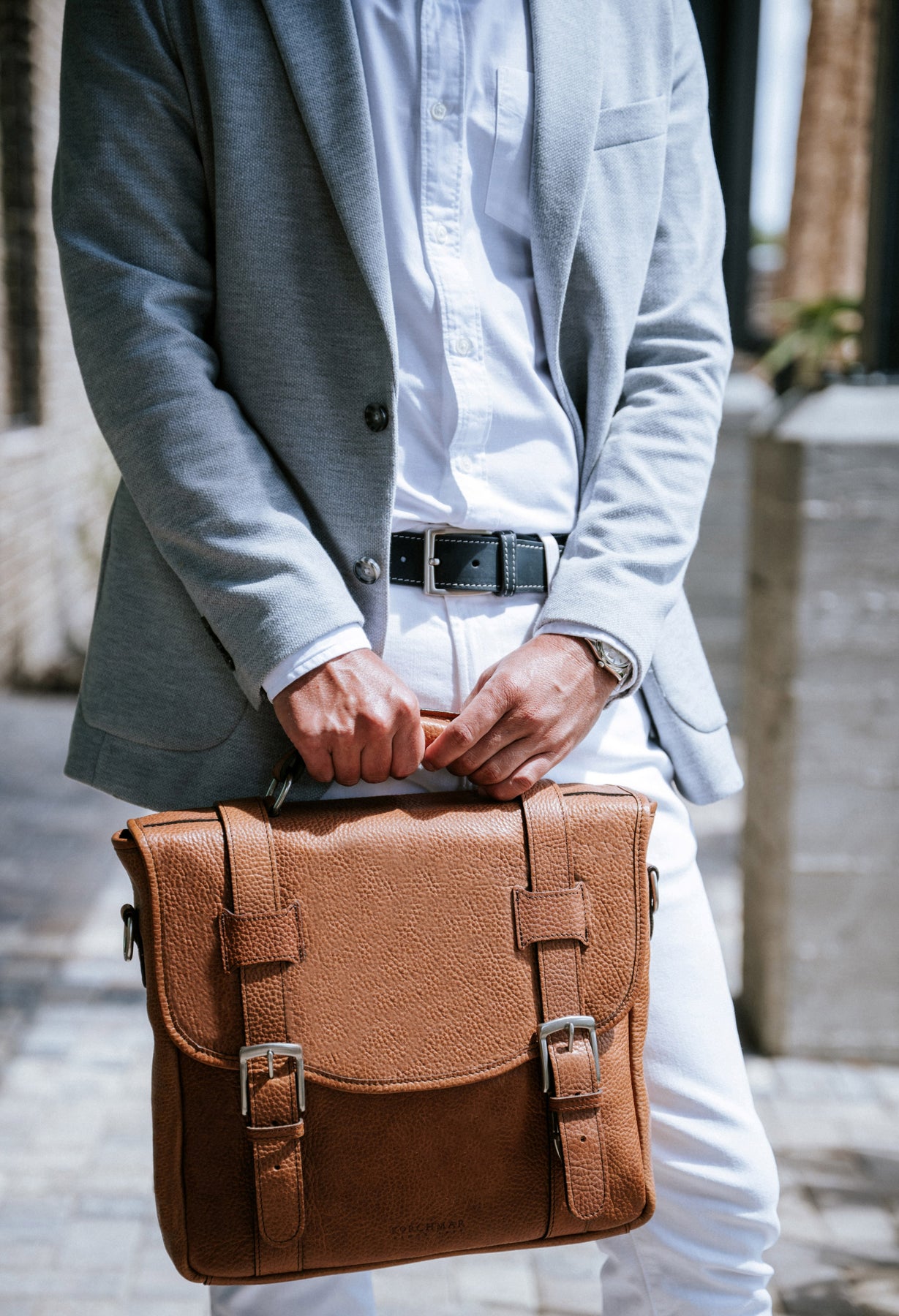 A high-quality leather belt that will become uniquely yours through its beautiful patina. Made from a single, thick layer of luxurious full grain leather, and assembled using solid brass hardware. The Roman universal belt is 1.5” wide and available in custom sizing. Be the epitome of sophistication with this high-end accessory while perfectly complimenting your favorite Korchmar bag or accessory.