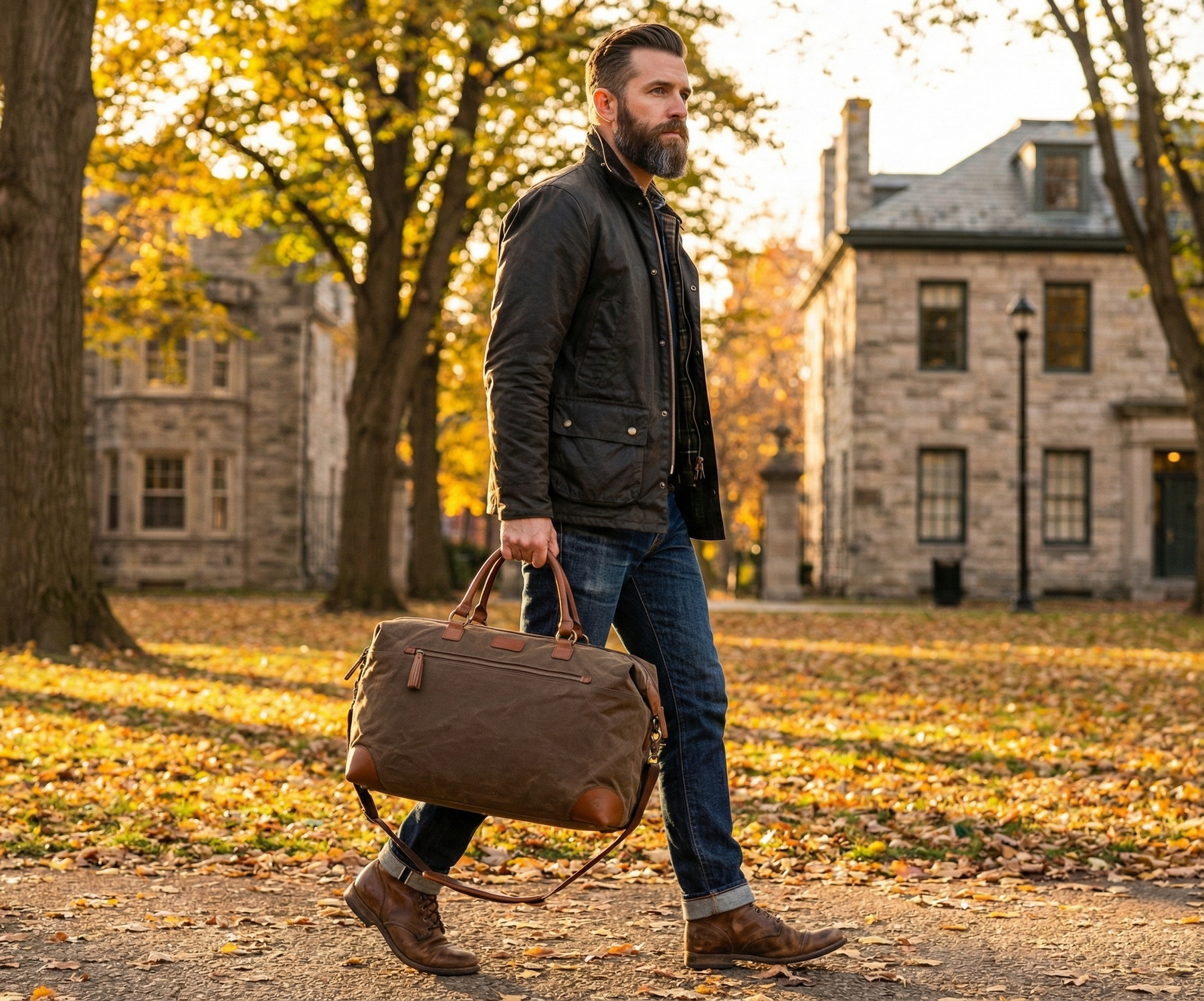 - Premium waxed canvas trimmed in American Full Grain Cowhide