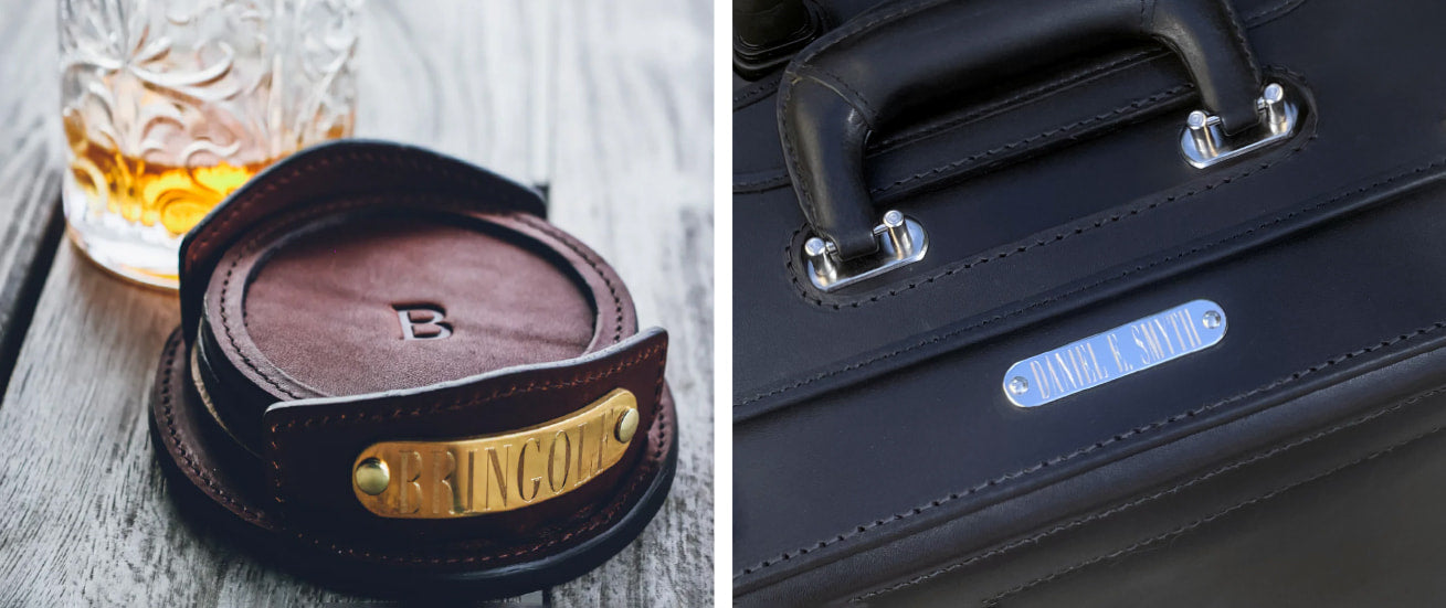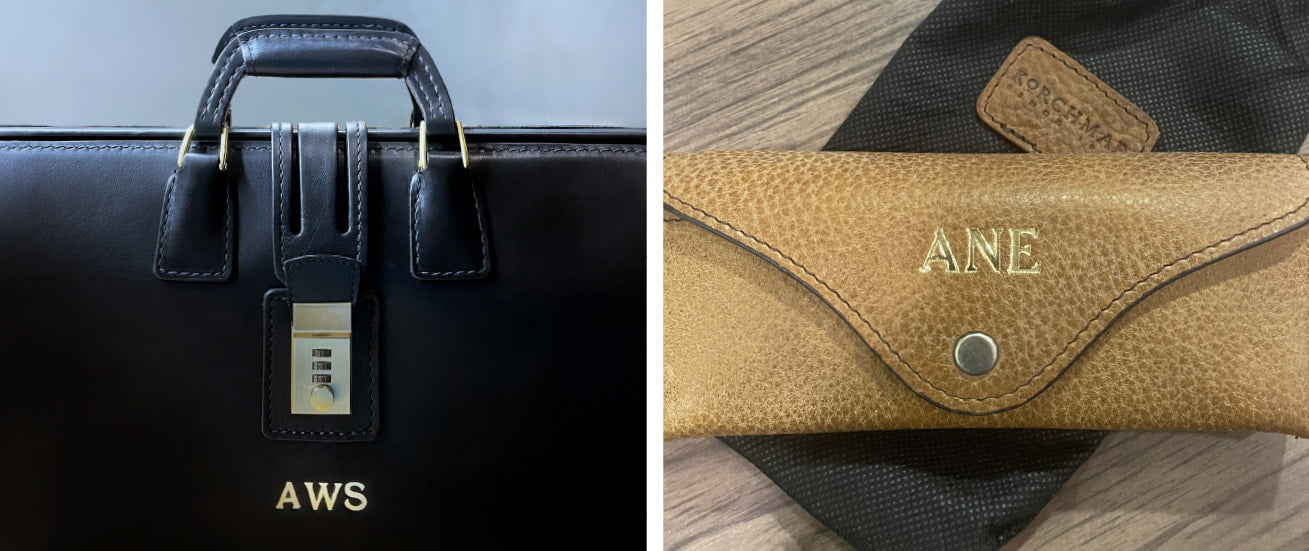 Elevate your Korchmar piece with a touch of bespoke craftsmanship. Choose from blind stamp, gold foil, and silver foil monogramming, or create a custom nameplate to make it truly your own.